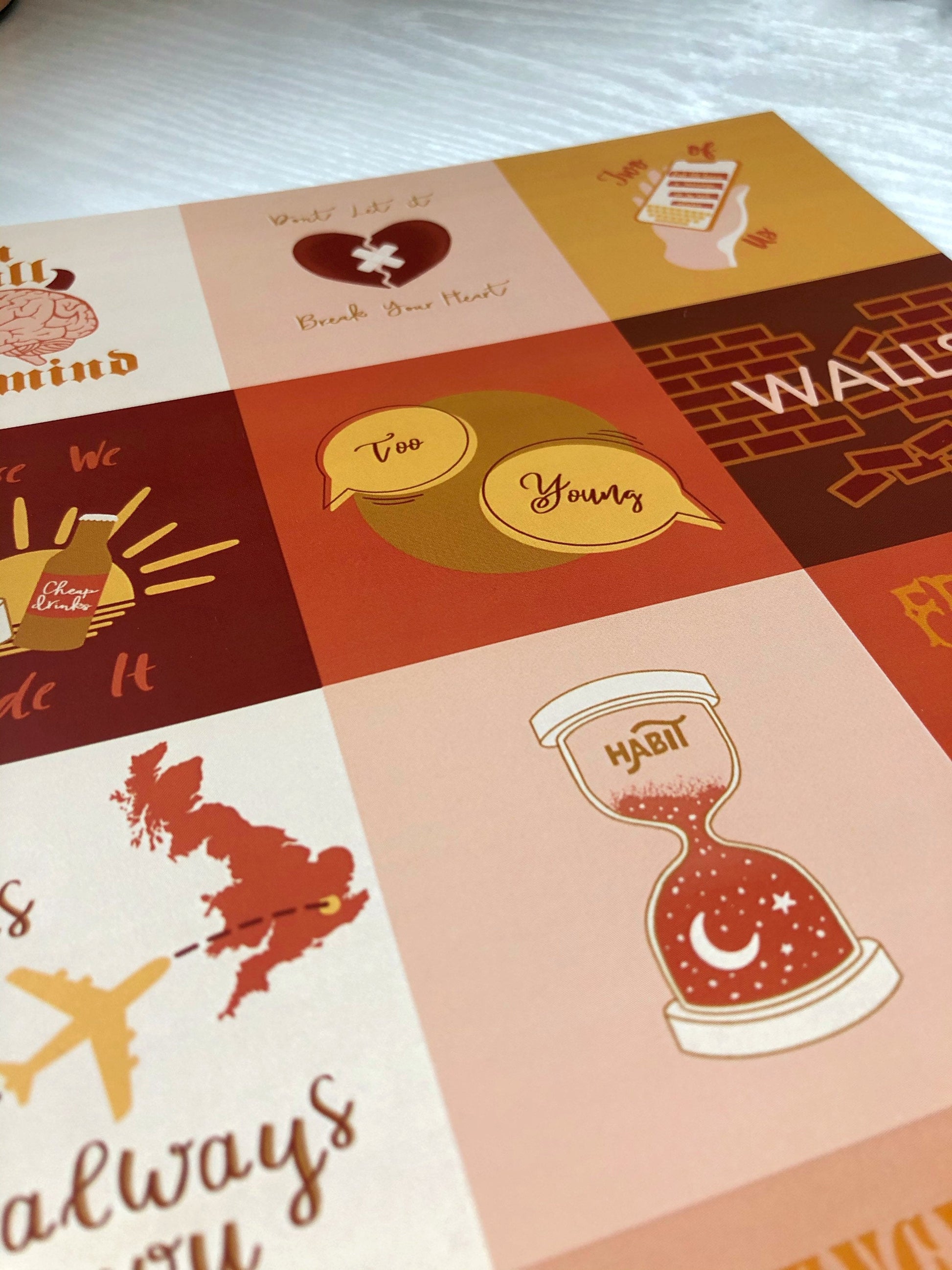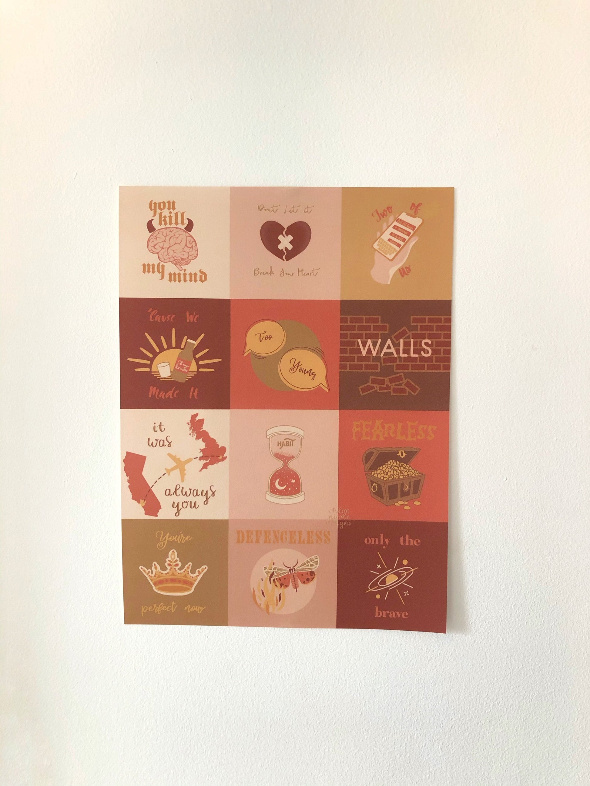 Louis Tomlinson 'Walls' Print. Each illustration has something relating to the song title/music video/lyrics from Walls by Louis Tomlinson. See my Instagram for the lyrics that inspired each one (@chloe.nicole.designs) Digitally hand drawn design by me.