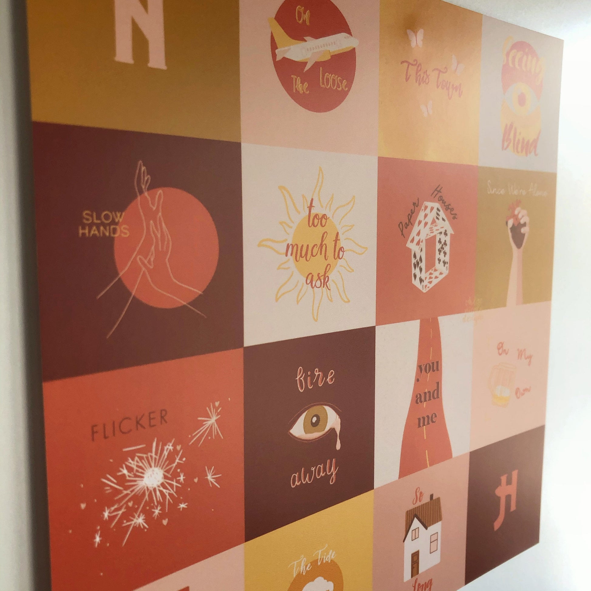 Niall Horan 'Flicker' Print. Each illustration has something relating to the song title/music video/lyrics from Flicker by Niall Horan. See my Instagram for the lyrics that inspired each one (@chloe.nicole.designs) Digitally hand drawn design by me.